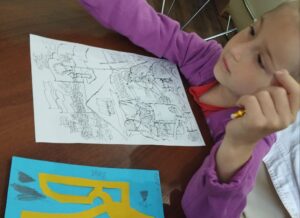 А кульмінацією став майстер-клас із виготовлення малого Державного Герба України — Тризуба. Наші діти, творчі й натхненні, із захопленням створювали власний символ України за допомогою трафаретів, розроблених учасником Революції Гідності Павлом Титуленком.
